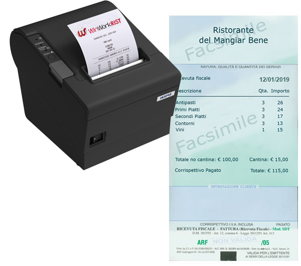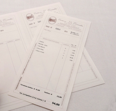 La stampa del conto può essere effettuata su classiche stampanti laser o inkjet. Nel caso in cui già disponi di una stampante di questo tipo basterà sincronizzarla con il gestionale. Le ricevute, personalizzabili, verranno fornite già fiscalizzate.